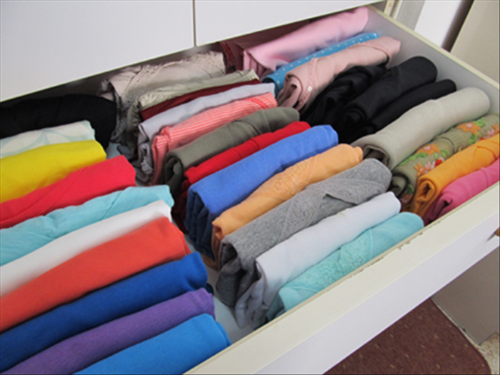 Fold all sorts of shirts, tees, basic tees and graphic tees. The best way to fold them is to roll them if your using a pull our drawer and arrange them according to color. In this way this is easy for you to find the right color that will match your mood or that will complete your ensemble.