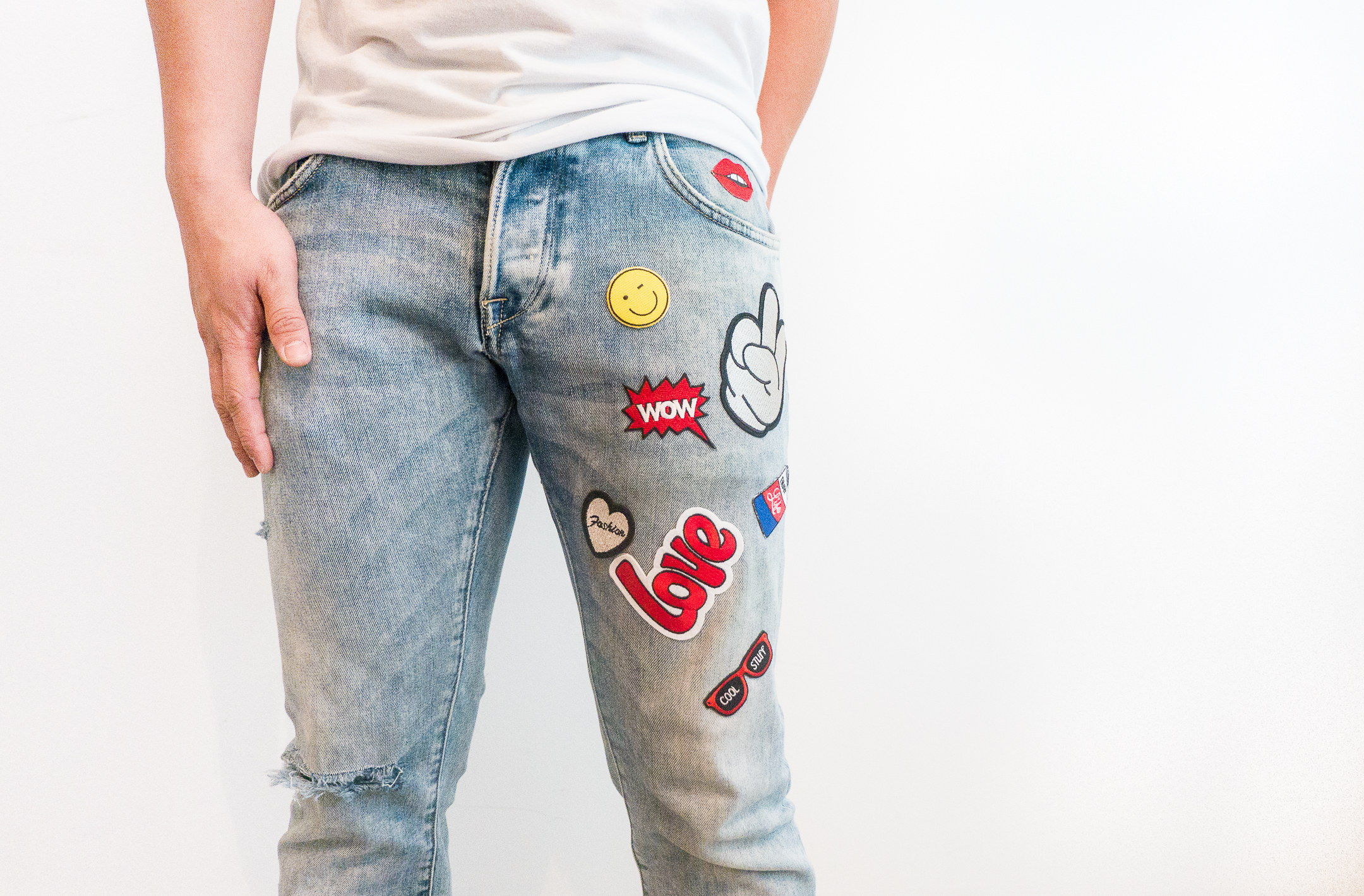 To be honest, I don’t have light colored tattered jeans, that one that I wore from my old post was my black raw ripped from Zara and if you check my Instagram you will notice that I didn’t sport this look.  Last weekend I got bored and started checking out some of my old pair of jeans to dispose of. Suddenly a light bulb appeared above my head. I got this brilliant idea, I will mix patch and tattered together.