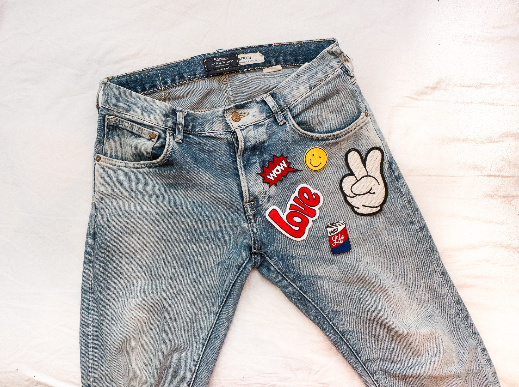 Try to be playful or creative when placing your patches because once you start ironing you will not be able to remove it. In my case, I want to highlight the left side and pocket of my jeans on the other side that is already tattered.